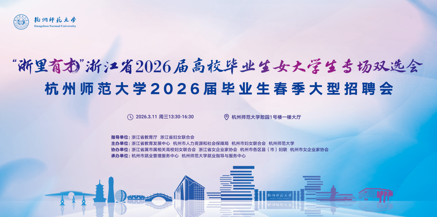 “浙里有才”浙江省2026届高校毕业生女大学生专场双选会暨杭州师范大学2026年春季校园招聘会
